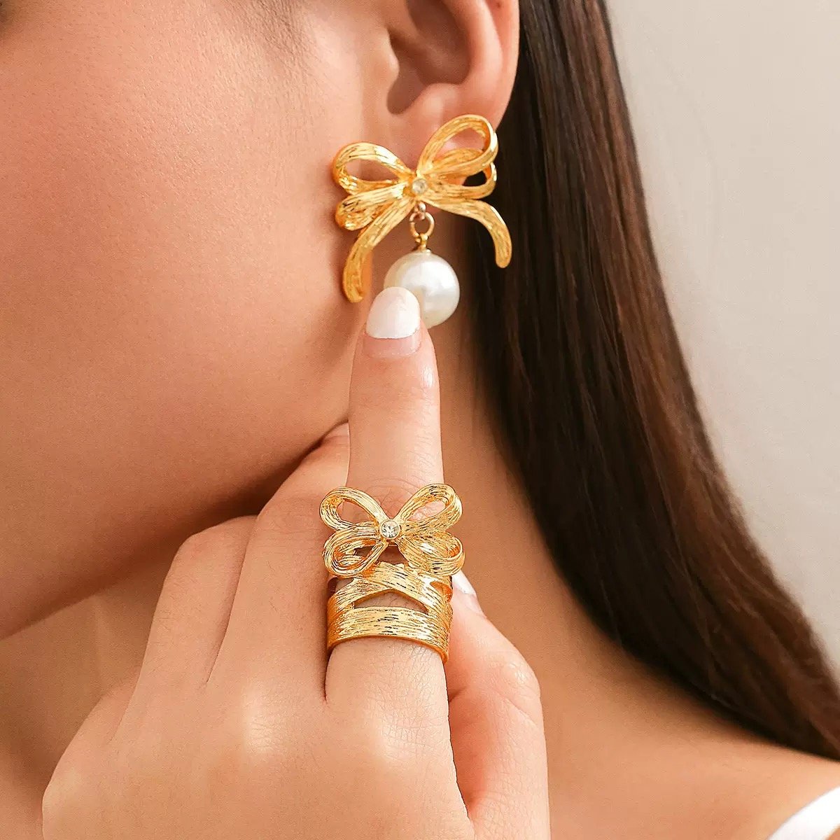 18K gold-plated asymmetrical freshwater pearl earrings and rings quantity